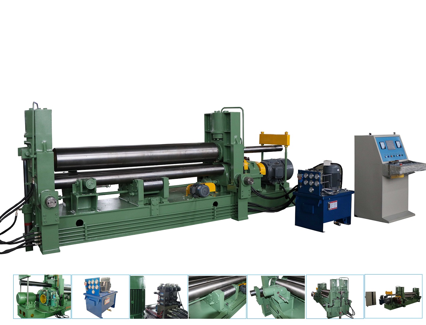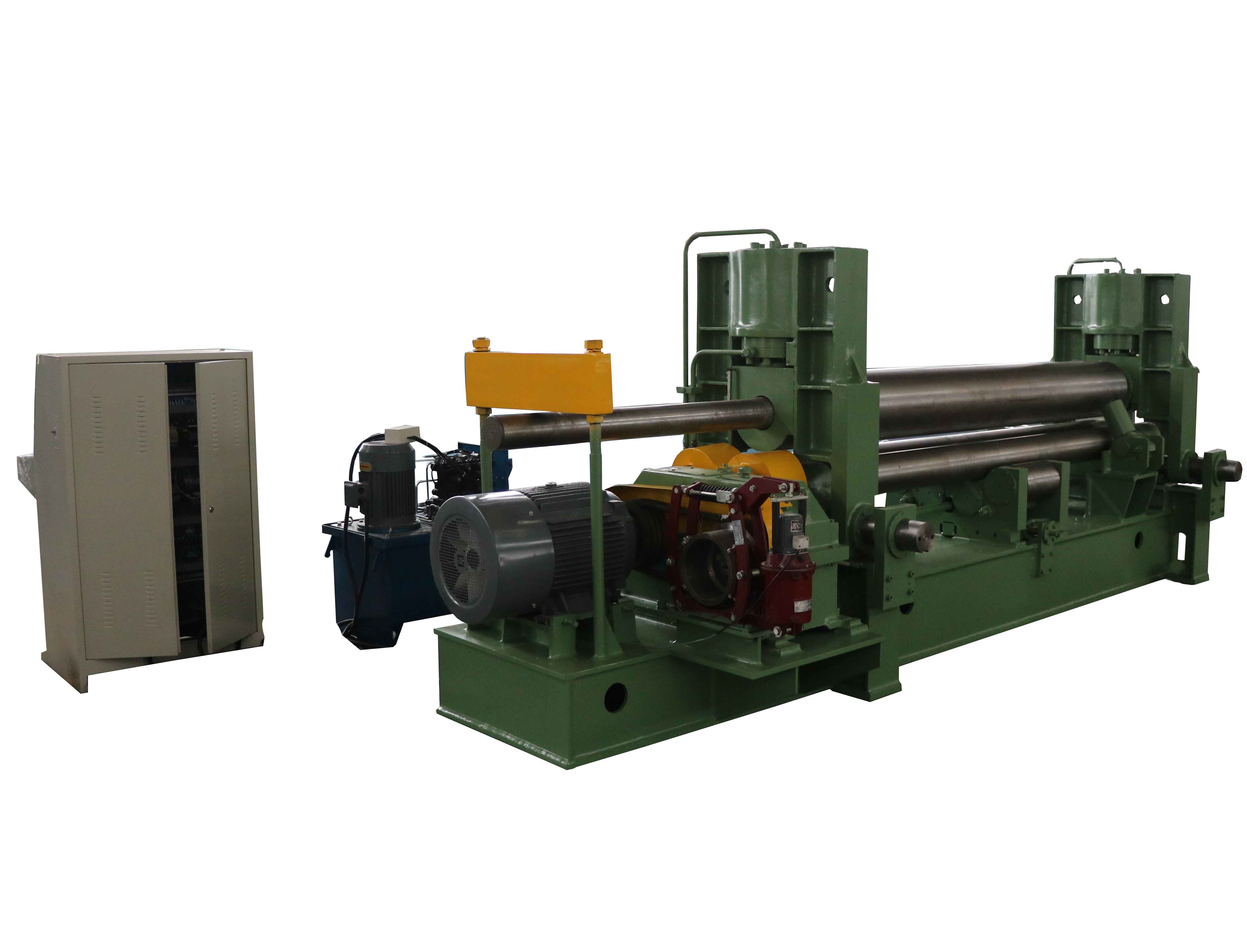 W11SNC萬能式三輥卷板機是一種雙夾板彎板機。 上輥為液壓驅(qū)動。 上輥可水平和垂直調(diào)節(jié),兩個下輥是固定的。 所有合金鋼輥均經(jīng)過感應(yīng)淬火和熱處理。 經(jīng)過感應(yīng)淬火處理后,所有的輥都將被研磨和拋光。