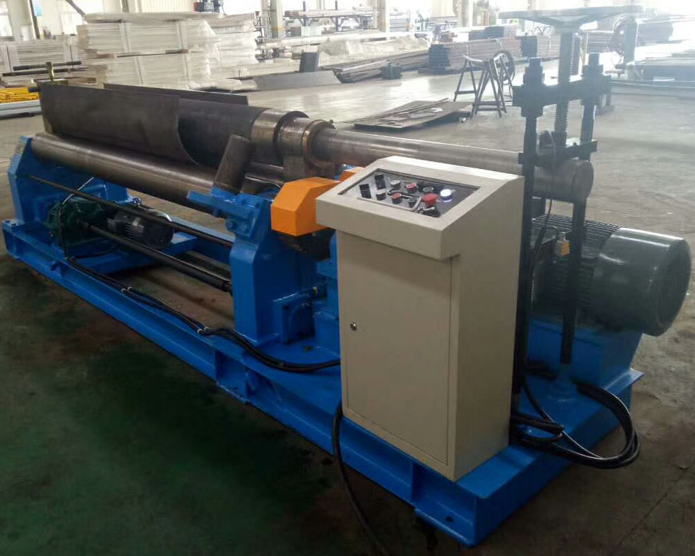 W11對稱彎板機是全機械式三彎板機。 三個滾筒全部固定,像金字塔一樣放置。